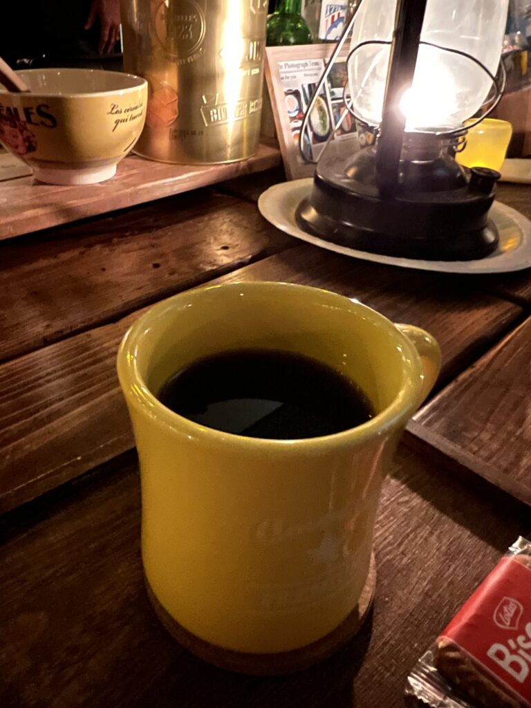 氷で流石に寒くなったので、コーヒーをいただきます。